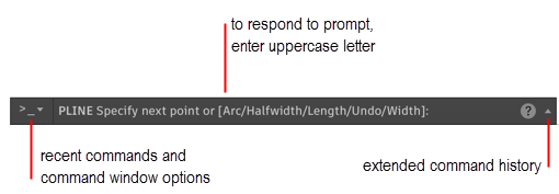 After you enter a command, you may see a series of prompts displayed at the command line. For example, after you enter PLINE and specify the first prompt, the following prompt is displayed: