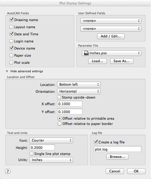 Determines the plot stamp location, the orientation of the plot stamp, and the offset you want to apply relative to either the printable area or the paper border.