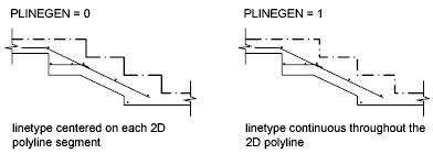 For polylines, you can specify whether a linetype pattern is centered on each segment or is continuous across vertices throughout the entire length of the polyline. You do this by setting the PLINEGEN system variable.