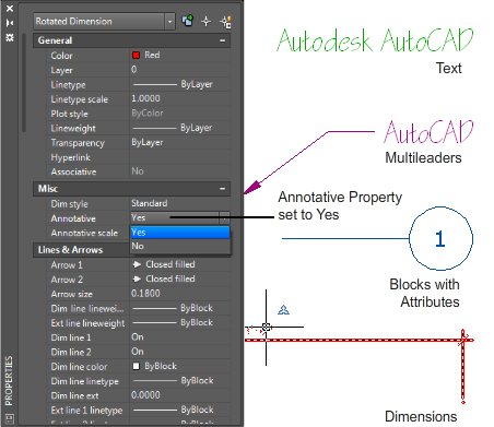 Annotation objects include dimensions, notes, and other types of explanatory symbols or objects commonly used to add information to your drawing.