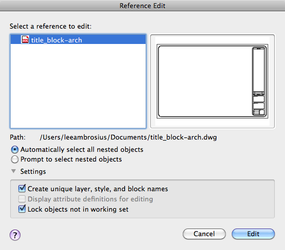 To select a reference to edit, select an object in the reference. If you select an object that is part of one or more nested references, the nested references are displayed in the dialog box.
