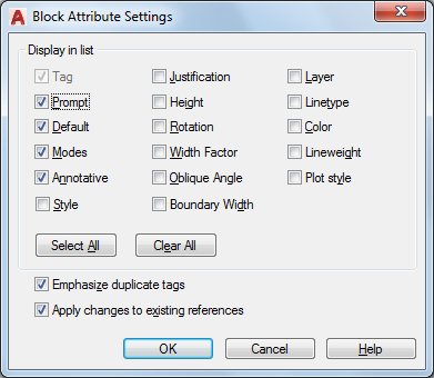 Controls the appearance of the attribute list in the Block Attribute Manager.