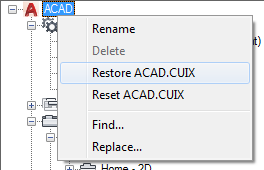 Note: When resetting, only CUIx files found in theUserDataCache folder under the install location of the program can be reset.