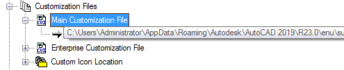 <drive>:\Users\<user profile name>\AppData\Roaming\Autodesk\<product name>\<release number>\<language>\support\<customization file name>.cuix.