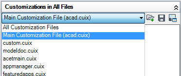 - Select Main Customization File <file name> or one of the loaded CUIx files to set it as the working CUIx file.