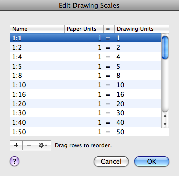 Displays the list of currently defined scales. Also displays temporary scales that are imported when xrefs are attached. If a scale name is duplicated, but has a different value, a number is appended to the name.