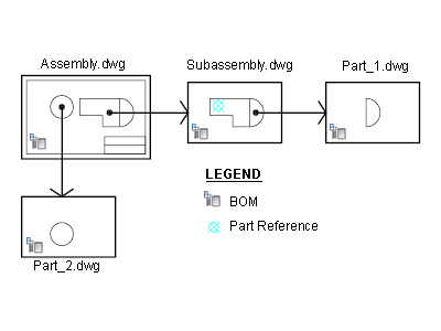 The X-attach workflow is not restricted to an assembly - part scenario. You can also attach a subassembly drawing to an assembly drawing as an xref. In the BOM of the assembly drawing, the subassembly is displayed as an expandable item. When you expand the subassembly, the parts of the subassembly are shown below it. Using this technique you can build a hierarchy of assemblies and parts.