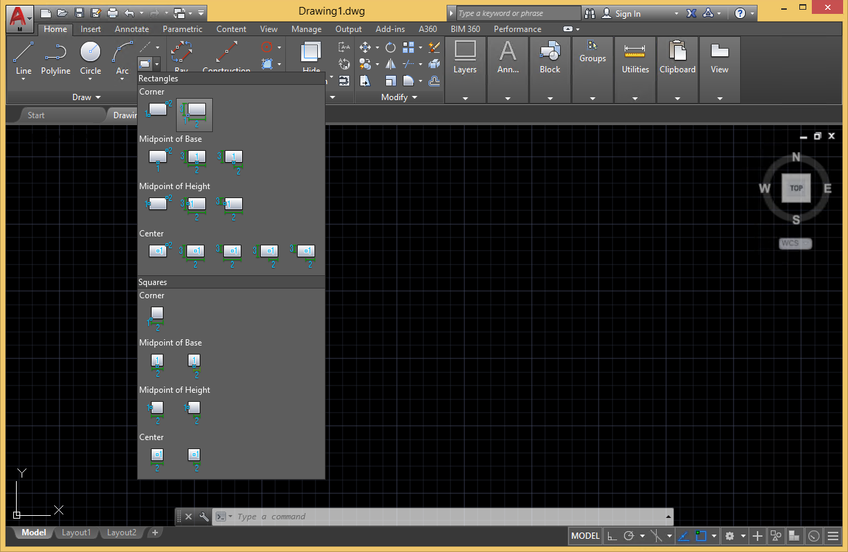 These commands now display a preview, making it easier to place the rectangles in the drawing area. The commands have also been enhanced to support dimension input, making it easier to precisely specify the base and height.
