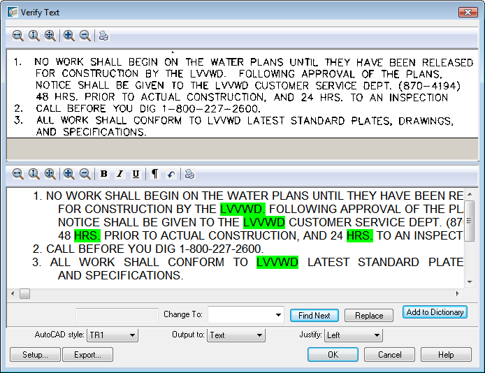 Verify Text window where you can make the necessary corrections and then enter the new text into the drawing.