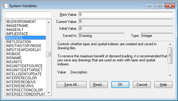 Among over 500 system variables to control AutoCAD behavior, there are several that you can use to improve the handling of large data sets. This section explains first how to access the system variable editor, then provides background information and recommended settings for particular variables.