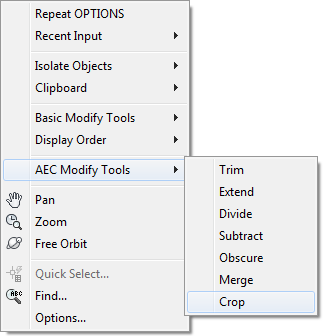 Before you add contour polyline data to a surface, consider whether it includes any terrain that is not needed for design purposes. If so, you can use the AEC modify tools to crop unwanted portions of the contours. As shown in figure 5, these tools are available on the right-click menu when no objects are selected in the drawing.