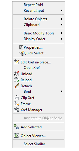 Figure 16: Xref object context menu