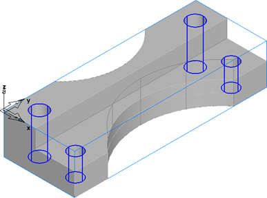 This step shows you how to use Interactive Feature Recognition to create features. In this example you will create Side features and then Hole features.