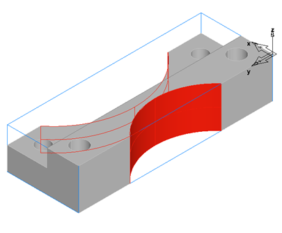 - In the graphics window, select the surfaces on which to create the curved Side features, on both the front and back of the part.