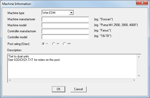Select CNC-Info > Machine from the menu to open the Machine Information dialog: