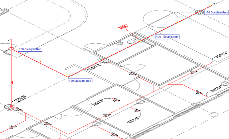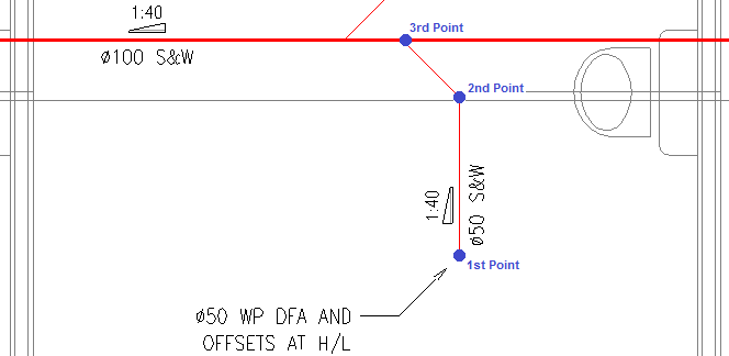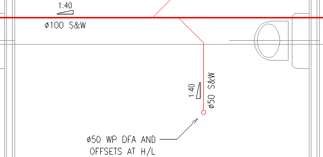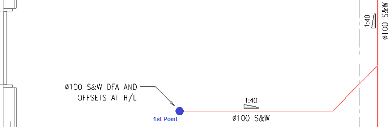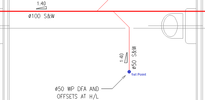 Create. Using snap functionality, select the center point of the circle indicated on the public health system layout. The Design Line will automatically set to the previous elevation of (-500).