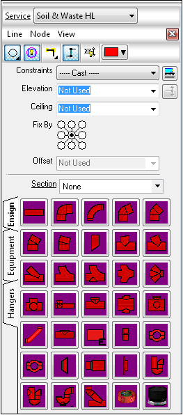 New Design Line because the command is already active. If this is selected, the active Design Line will change color from the active Constraint color in this example Red, to a Grey shade indicating an in active system. To re-activate the required public health system, double-click on the line to activate.