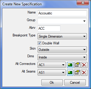Specification Table Breakpoints can be created for the different library types (Rectangular, Round, Flat Oval and Pipework).