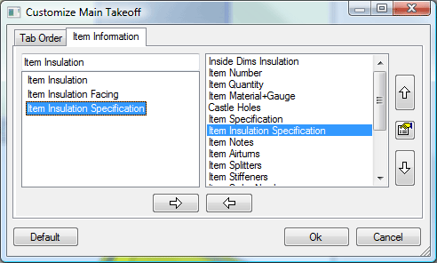 The Insulation Specification can then be applied to a Fitting from the Item tab in Takeoff. If this option is not displayed, click Takeoff