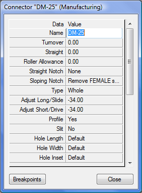 Breakpoints: Breakpoints for connectors in the Fabrication products are there for the 3D viewer functionality and allow the user to control how the connector is displayed in the drawing or viewer node points are also set within the Breakpoints.