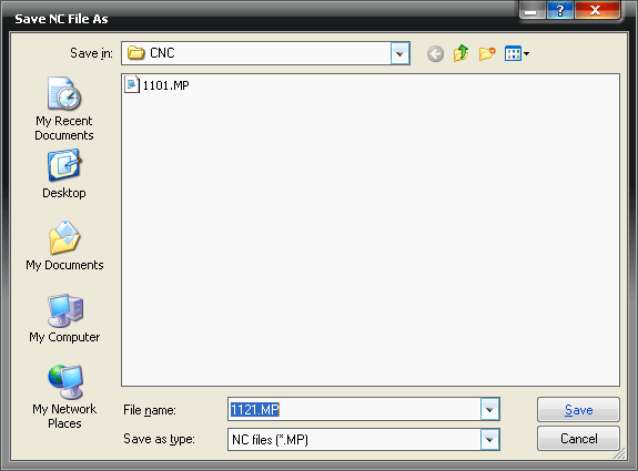 It is possible to write the NC data directly from within Profiler. To do this, click Profiler Write NC. This displays the following dialog, prompting you for a number or file name to assign the NC Data, and a path to save it in.