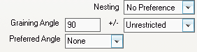 Preferred Angle: The Preferred Angle field has no effect if a graining angle is specified, but if no graining angle has been set up, the preferred angle will define the default nesting angle of the development.