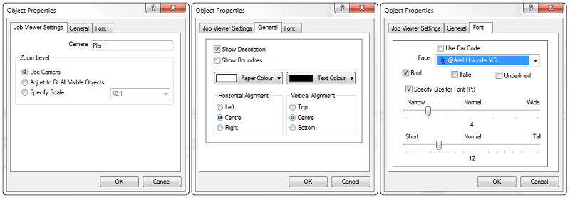 - Camera: Enables users to assign an elevation to the specific window within the model for example (Plan, Bottom, Side, End, Isometric). Note Cameras applied within a model must be consistent with the Camera name settings within the Job Viewer Graphic Settings.