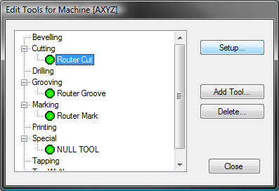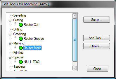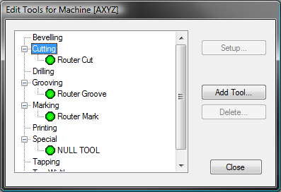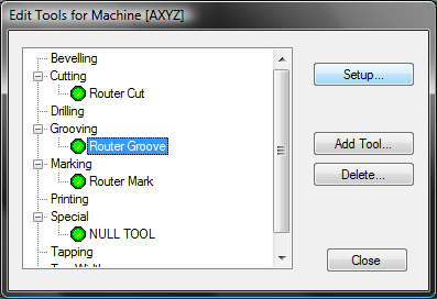 Tool by Tool: On Axyz machines this will determine the order that tools are used in. Highlight a tool by clicking it, then use Move Up / Move Down arrows to change the tool order. It is recommended that the Tool by Tool option is used on a router machine. The order normally used in the a router configuration would be Grooving, Marking, then Cutting.
