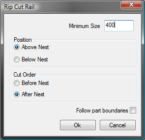 Cut Order: Allows the rip cut to be performed either before or after the rest of the nest has been cut.