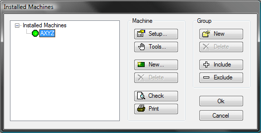 Installed Machines, or by clicking on the Installed Machines Icon in the Utility Bar. The Installed Machines dialog displays.