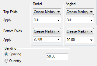 The Bending section allows the user to determine how many fold lines to place on a Radial Fold, or what spacing to use on the Radial Fold.