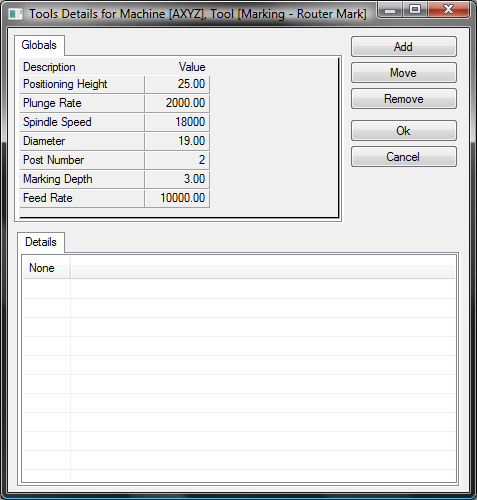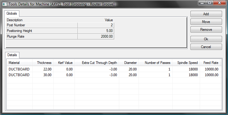 Post Number: This is used to identify the tools used by the router machine, in the above instance, for the cutting tool, this would be set to 1.