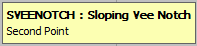 The Sloping Vee Notch command draws a Vee Notch based on points selected and width, with the chosen element being broken to accommodate the notch.