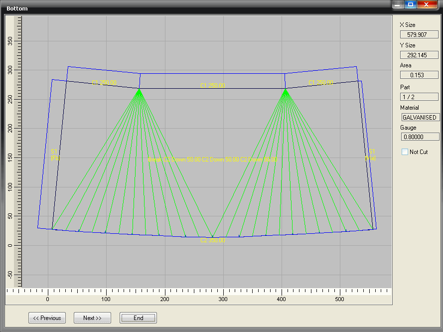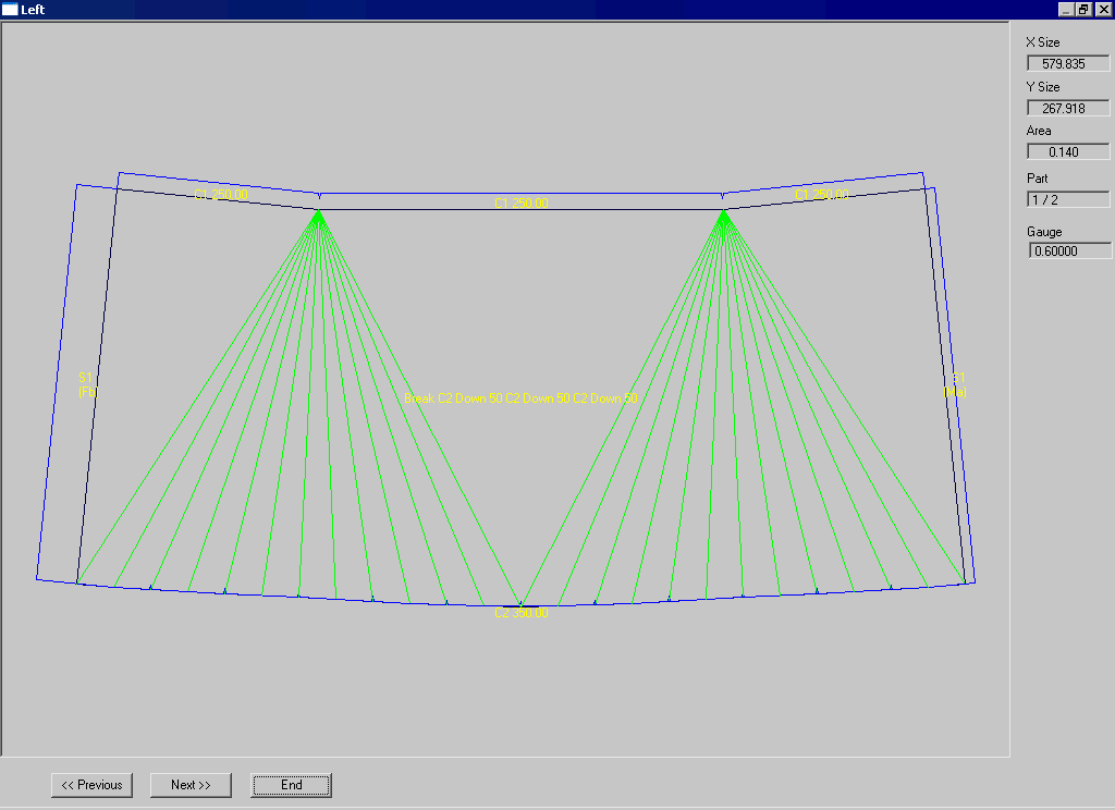 With the Vee Notch Type Pattern Option set to Slit, the development would be drawn as shown below: