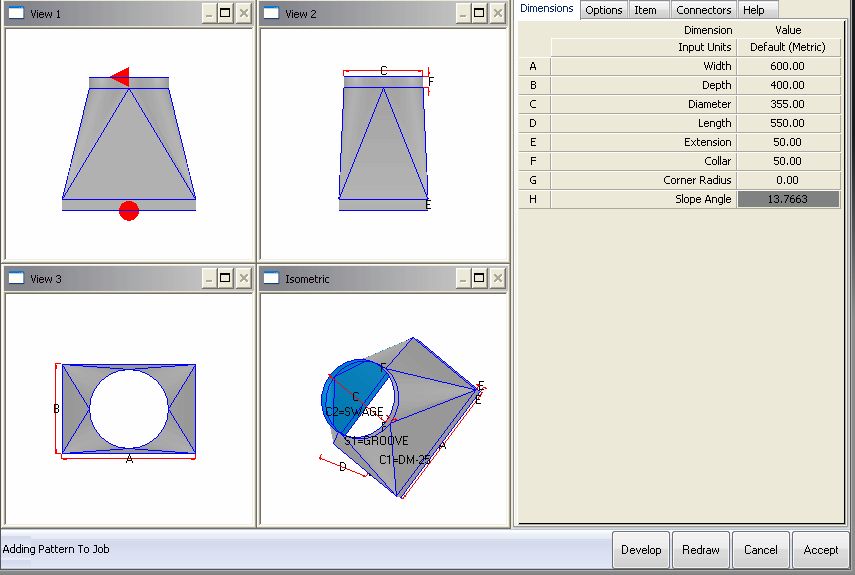 he Vee Notch Type option in Pattern Options allows connector ends to be marked either with a slit or a marker notch if the angle between the sides exceeds 180 degrees.