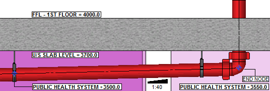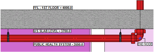 Functionality to enable a user to manually select end nodes situated at the base of a riser within the public health system. Once determined the fitting will maintain the required invert level based on the Elevation in relationship to the U/S of Slab level.