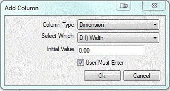 5. Select D1) Width in the Select Which pull-down menu to associate this column with the specific Width of the fitting.