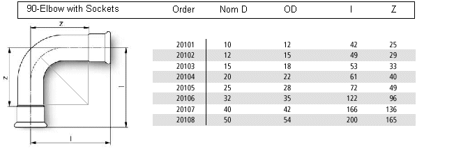 The data below is from the OEM's PDF catalog. The 2 Elbows belong to a Product Type that is joined by a crimped Socket and Spigot method.