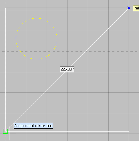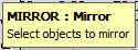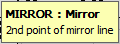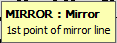 The command line prompts to click or type in the co-ordinates of the first point which forms the 'mirror' line.