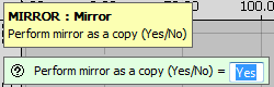At the 'Perform mirror as copy (Yes/No)' prompt, if y is entered, the object(s) is mirrored and copied. If n is entered, the object(s) are moved to the mirrored position.