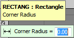 Next you are prompted to enter a corner radius for the Rectangle. By default, this value is specified as 0.00 to ensure a square on the corners of the rectangle.