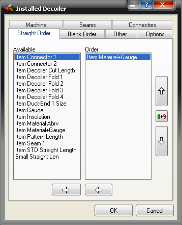 This tabe lets you specify the order that the Decoiled Straights are put through on the DEC file. By default, this is set to sort the straights by material and gauge.