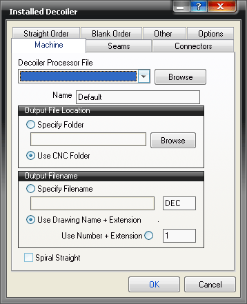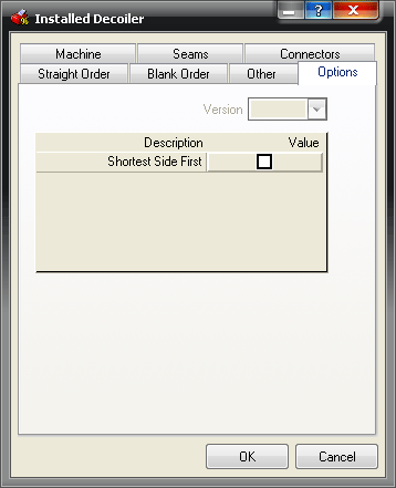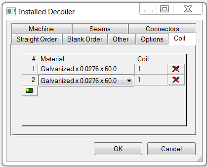 A blank Installed Decoiler dialog displays, unless a previous decoiler has been installed.