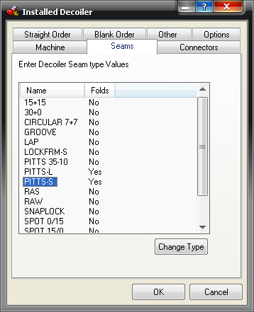 Double clicking on a seam in the list will allow you to change the folds to the seams supported by the decoiler.