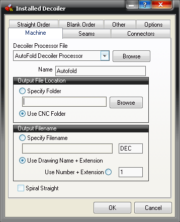 The following procedure below describes how to set up the Autofold decoiler machine and generate the .DEC file that the Autofold controller can read.
