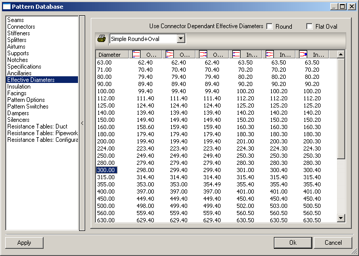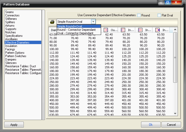 It is important to use the same effective diameter table throughout, and note that the Effective Diameters option should be off (not selected) in the Database