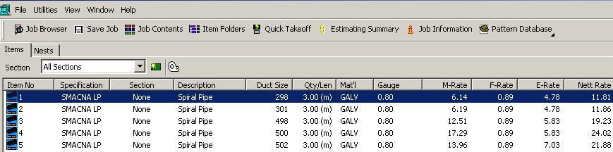 Using the 'adjusted' effective diameter table, the items in the comparison file are matched to those in the base Estimate. Hence, the calculated rate for those items does match up. This can clearly be seen in the Survey dialog image above and Job Contents listing shown below.