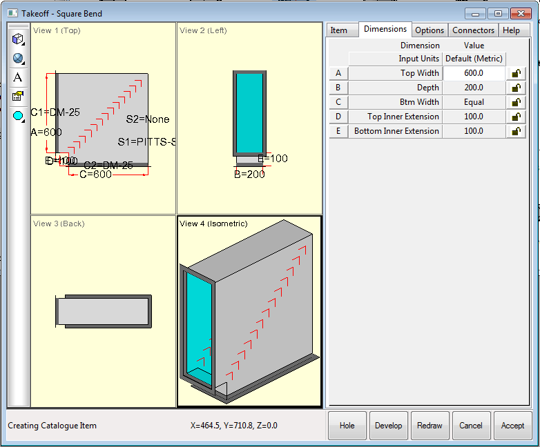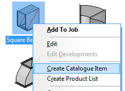 Catalog items are essentially standard fittings that have pre-set dimensions and other options. If a part is repeated on a regular basis, it may be wise to create it as a catalog item. The following information describes how to do this, and how a catalog item can be used.