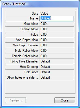 Fixing Hole Diameter : This controls the hole size when Fixing Holes are required on the seam. If set to Default it will use the Hole Diameter size set up in the Database under Pattern Options - Fixing Holes. If a value is entered then this will be used when the Seam is applied to a fitting.