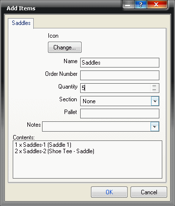 Quantity: This option specifies the total number of the collection that you want in the job. If in the above example the quantity is set to 5, that would require a total number of parts of 5 of the Saddle Shoe (1 per collection) and 10 of the A P Saddle (2 per collection).